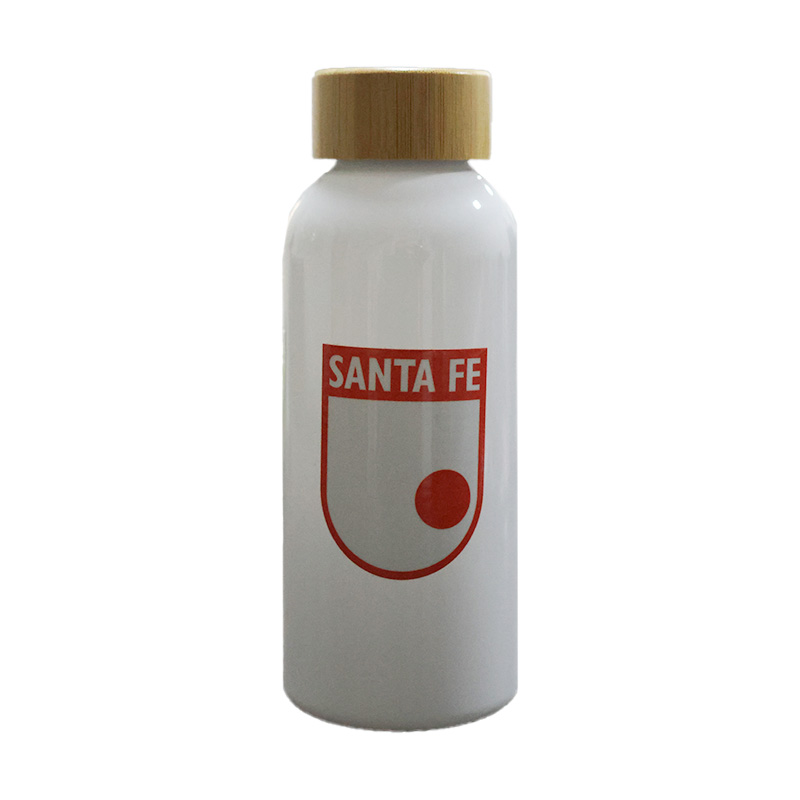 Cilindro de plástico con tapa de bambú.