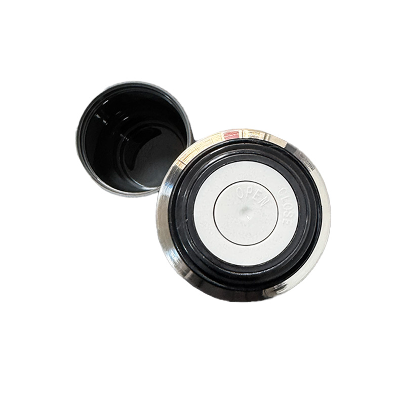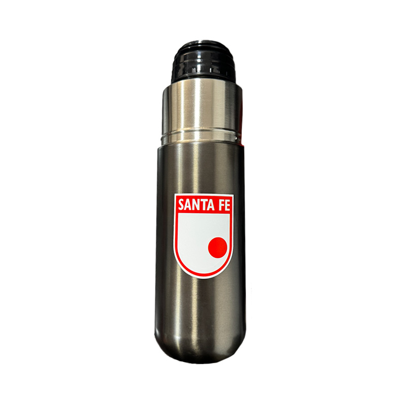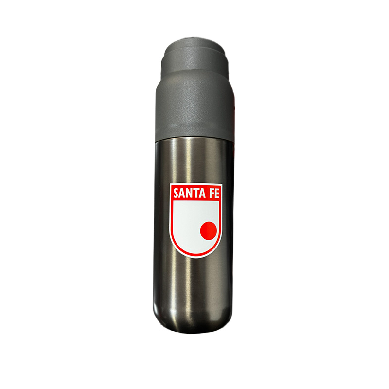 Botilito doble pared vacuum en acero inoxidable con aislamiento térmico que mantiene la bebida fría o caliente hasta 6h, Tapa plástica con función rosca y regulador para servir como vaso.